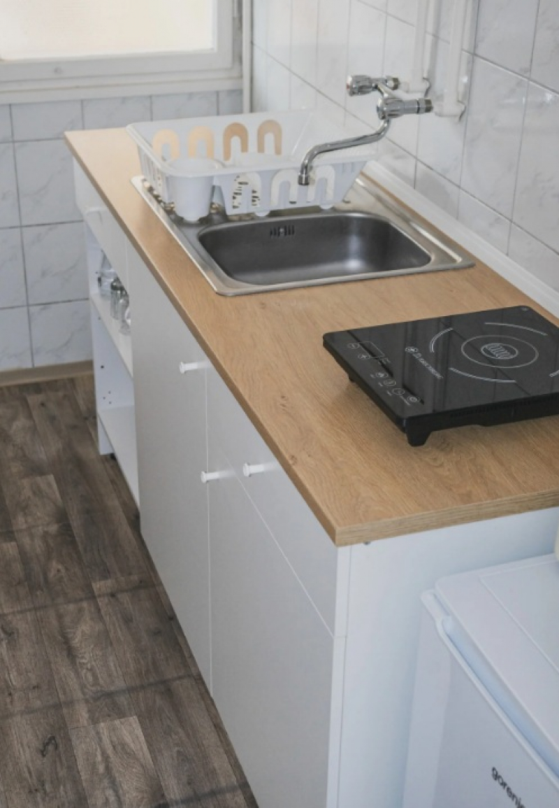 Apartmanházaink 4 személyesek (2+2), felszerelt konyhával, fürdőszobával, WC-vel minden házban.