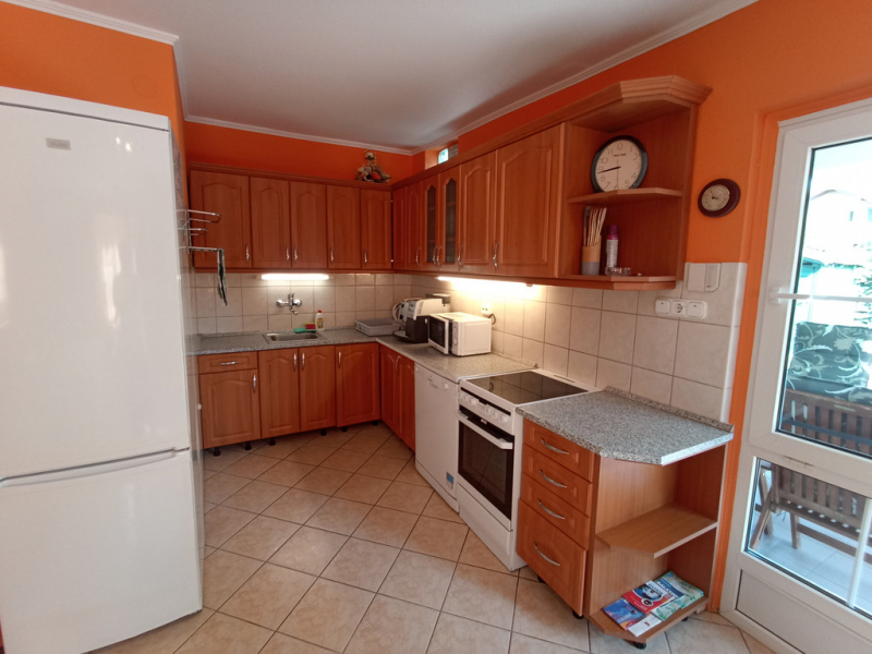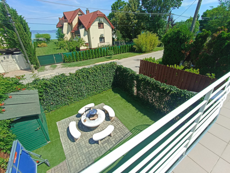 A földszinten tágas nappali, felszerelt konyha, étkező és egy fürdőszoba, az emeletem 3 háló és egy fürdő áll vendégeink rendelkezésére. Az emeleten nagy, Balatonra néző terasz található. A ház előtt terasz, a kertben grillsütő- bográcsozó. A zárt udvarban 2 autó számára van parkolási lehetőség.
