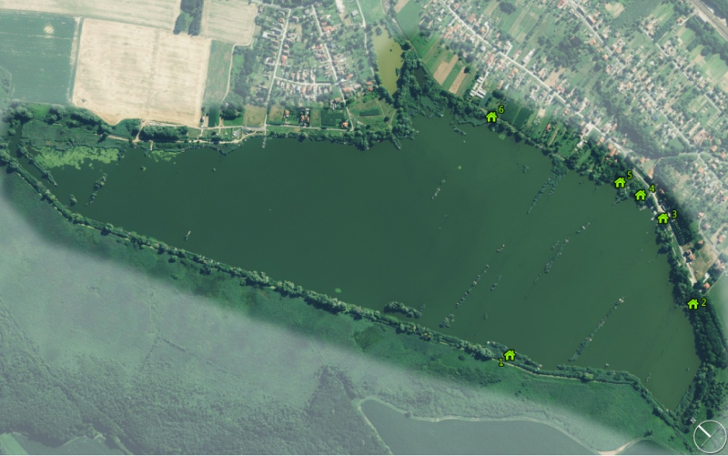 A horgász tó nyugati oldala csak csónakkal közelíthető meg, ahol jól kialakított stégeken is van horgászati lehetőség. A horgásztó keleti partja a falu belterületi részén található, ahol kiváló szálláslehetőségek és vendéglátóhelyek várják kedves vendégeinket.